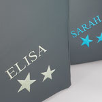 Den Namen gibst Du dann bei Kauf/Bestellung in "Anmerkungen" an. Hast Du Wünsche bzgl. der Farbe des Motivs (zum Beispiel Farbe der Sterne), darfst Du diese auch gern angeben. Wir schauen, was am besten passt.