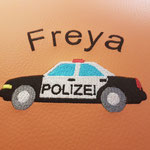 Umso länger der Name, umso kleiner die Schrift (max. 10cm Breite).
