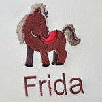 * Farbe Stickgarn für Text/Name auswählen (oder wir wählen für Dich das Passende aus)